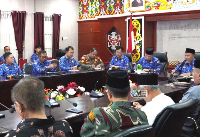 Rapat dipimpin langsung oleh Wakil Bupati Rahmanto Muhidin dan dihadiri Pj Sekda Sarwo Mintarjo, sejumlah Kepala Perangkat Daerah, Kepala Kantor Kemenag , Ketua MUI , Pimpinan Daerah Muhammadiyah, Pengurus Cabang Nahdlatul Ulama Mura, LPTQ Mura dan peserta lainnya di Aula Setda A, Kamis (12/3).