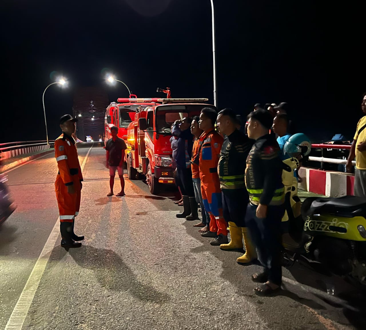 Sementara petugas dari Dinas Perhubungan dan Satlantas membantu mengatur lalu lintas supaya arus lalu lintas di atas jembatan tetap berjalan lancar.